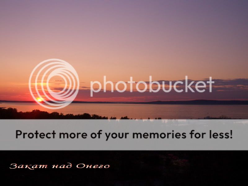 …Боже, какое красивое Онего. Глаза ненасытно пьют идеальные цвета и нежнейшие оттенки заката и волн. Кроме упоения красками, появляется ещё и чёткое осознание того, что Озеро рядом с нами – совершенно живое. Оно такое мягкое, то морщится, то журится, переливается, надувается. У него невероятный цвет - персиковое серебро или серебристый персик, немножко розового коралла. Чувствуется его чуть ощутимое влажное дыхание и уже засыпающего ветра. Полукруг солнца состоит из сверкающего расплавленного золота, потом из алости.