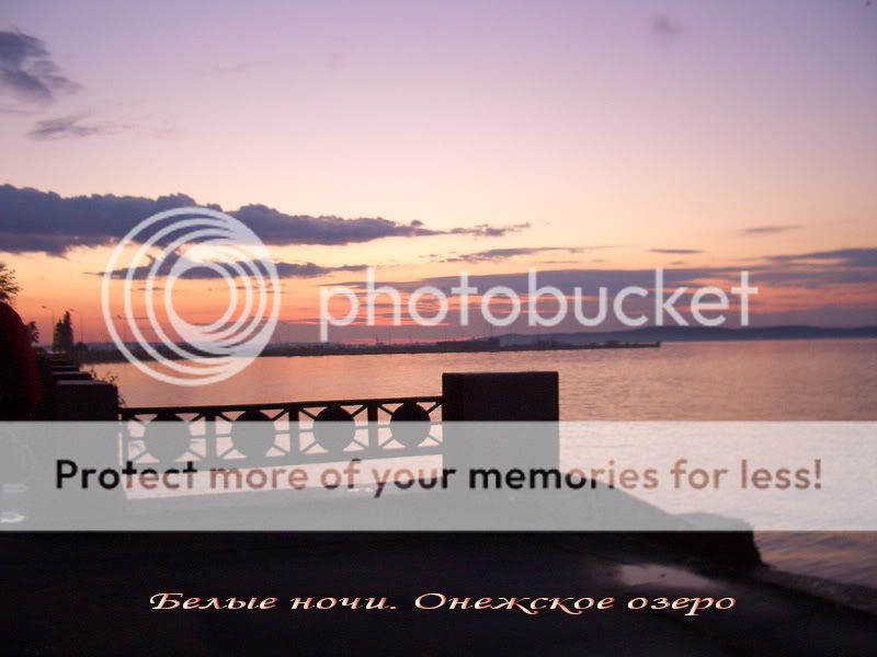 И вот, наконец, мы в Петрозаводске. На Онежском озере. В самый разгар белых ночей – конец июня. Набережная – просто шикарная, гранитная, а главное, она достаточно низкая, можно и по парапету походить, и на него присесть, послушать озёрные ночные шёпоты. Идеальней условий не придумаешь. Дело за малым. Разбудить мужа в 12 часов белой ночи, поднять, умыть, одеть и пойти гулять на Онего. :) Видели бы его лицо в момент расталкивания. «За что, за что мне такие муки?» - говорило оно. Опущу подробности, но мятеж на корабле был с трудом подавлен, и мы всё-таки вышли на набережную – а ещё говорят, что в мирной жизни нет места подвигам. Есть! Главным мотивом такого благородного и выдающегося поступка со стороны моей второй половины, было не романтическое желание окунуться в белые ночи, а прямолинейные функции бодигарда. Раз уж мне так хочется прогуляться в белых ночах, не отпускать же меня одну, выход один – молча, стиснув зубы, сопровождать.
