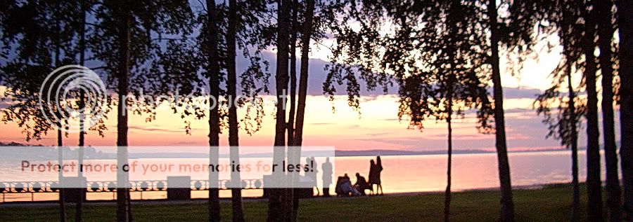 Пожалуй, я увлеклась поэтикой. Не все, гуляющие вдоль Онежского озера «купаются в белых ночах, а тем более видят «нежнейшие оттенки заката». Гуляем по набережной мы не одни. Народу много, но это рассеянная такая толпа. Много студентов, которые обмывают, наверное, здесь свои дипломы, а это означает – невероятное количество бутылок шампанского, перекатывающихся под ногами, и шуршащих пластиковых стаканчиков. 90% гуляющих еле держится на ногах. Местные мачо – это 3-х литровый пузырь пива в руках, матюки и харкание по сторонам… Извините )… Девушки, кстати, от них не отстают. Я внимательней пригляделась к мужу – бутылки в руках нет, молчит – не ругается, не харкает… - какое бесценное сокровище!!